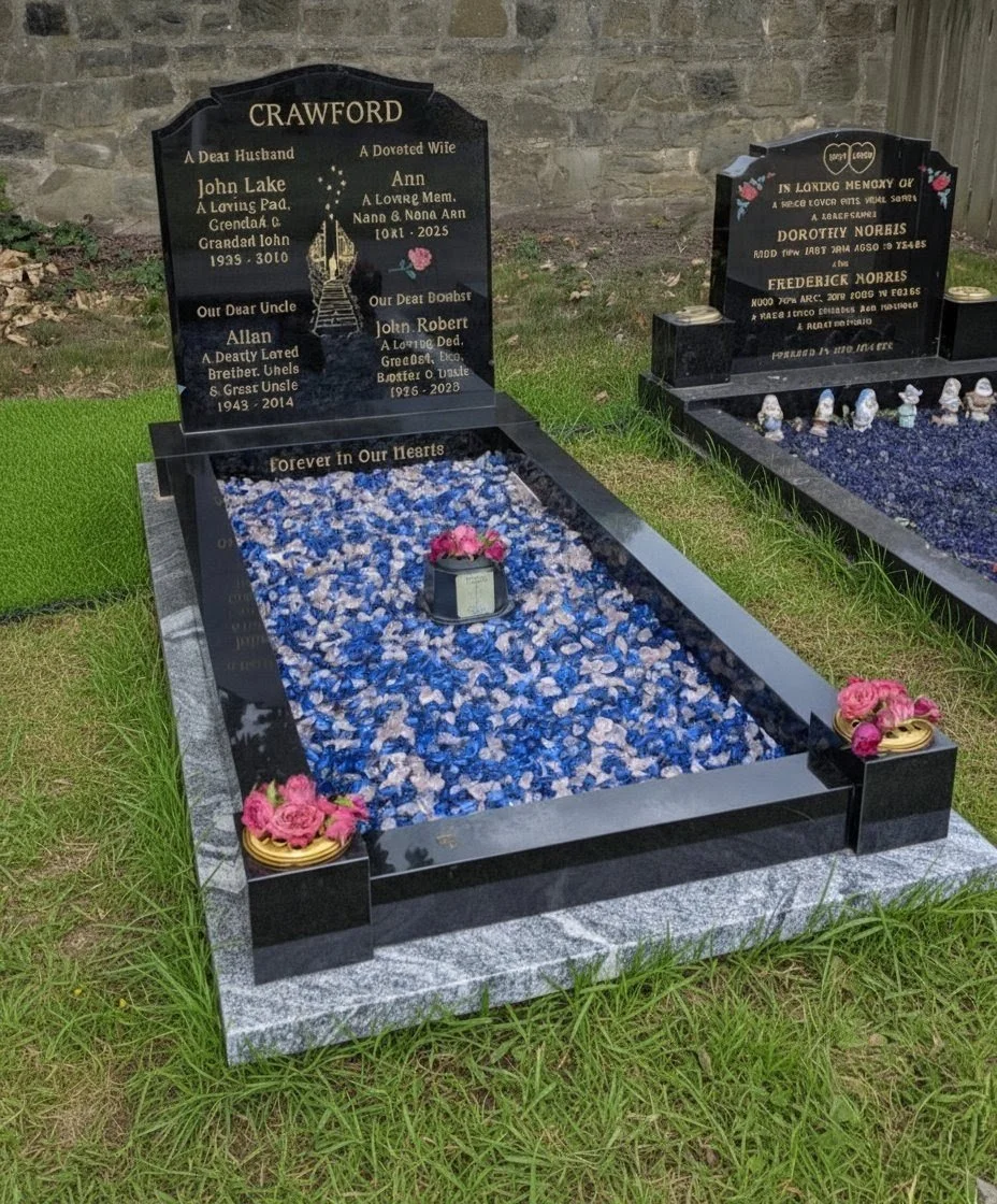 As a long-standing family-run business serving the North East and the wider UK, we specialise in creating beautiful, bespoke headstones and memorials. We offer compassionate, personal guidance through every step, ensuring a tribute that perfectly honours your loved one with lasting quality and craftsmanship.